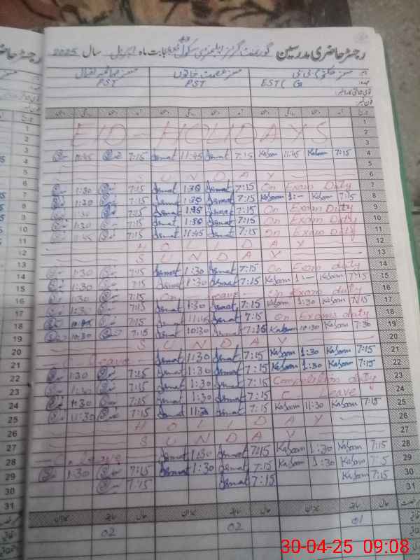 | CNIC | Full Name | Designation | R/C | Absence During Last Calender Month |
