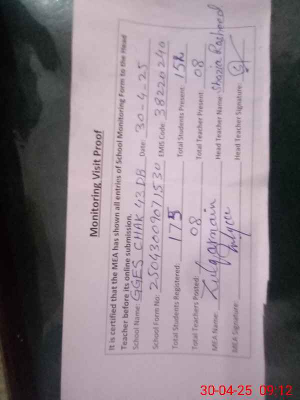 | EMIS Code: 38220240 | Name of School: GGES CHAK NO. 43 DB | |||