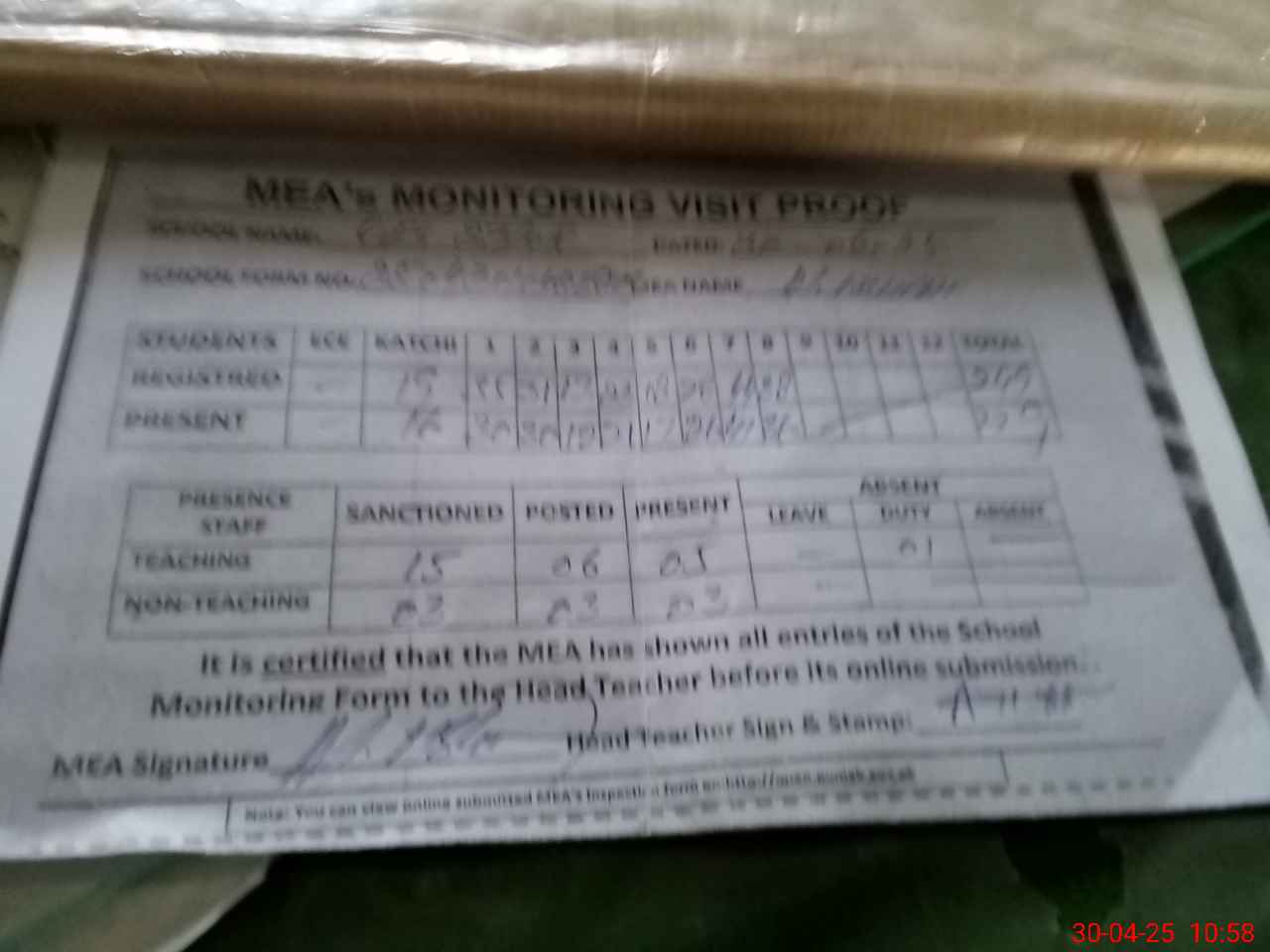 | EMIS Code: 36420076 | Name of School: GES 23/10-R, KACHA KHUH | |||
