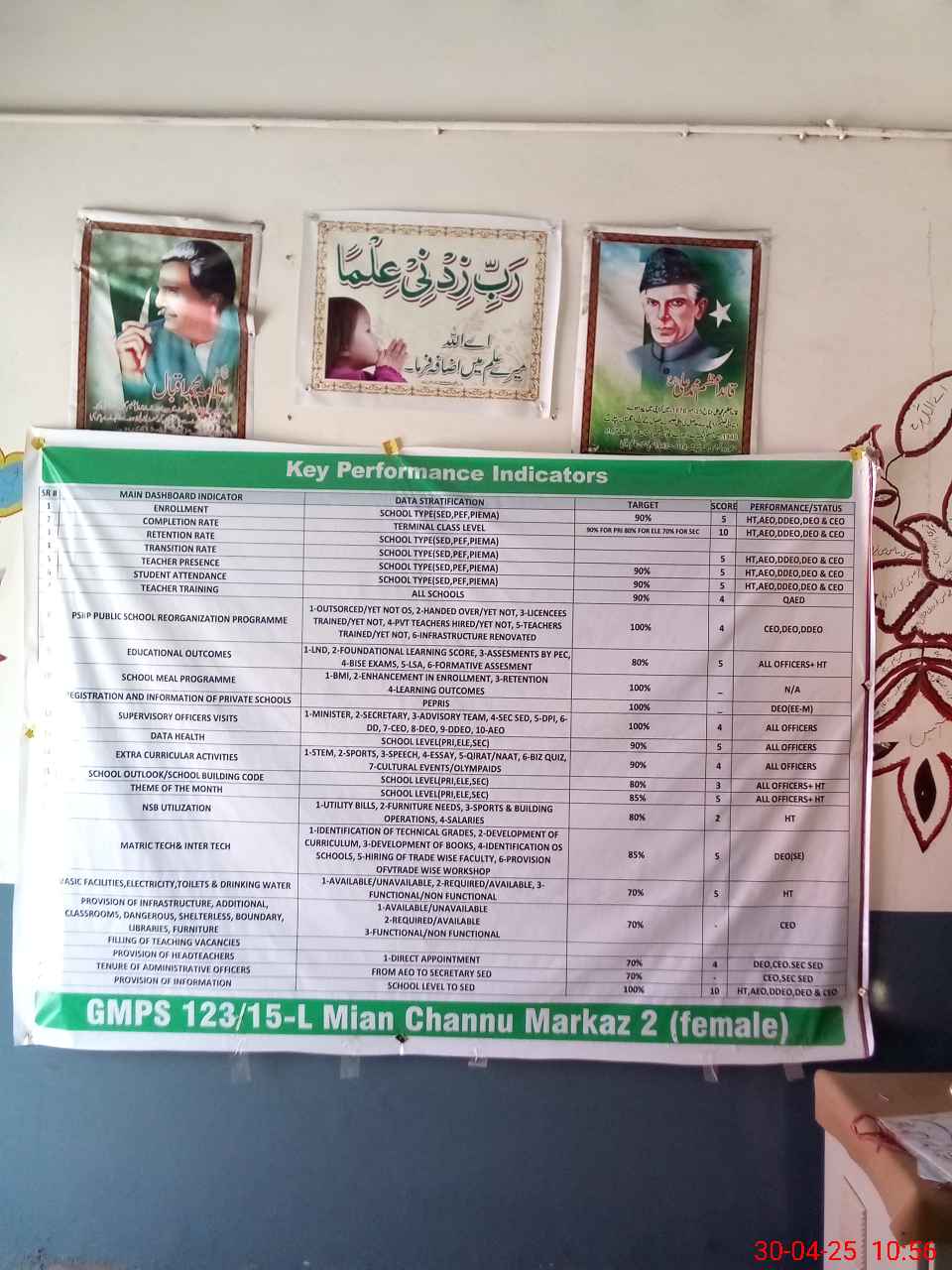 | EMIS Code: 36430320 | Name of School: GMPS123/15-L, MIAN CHANNU | |||