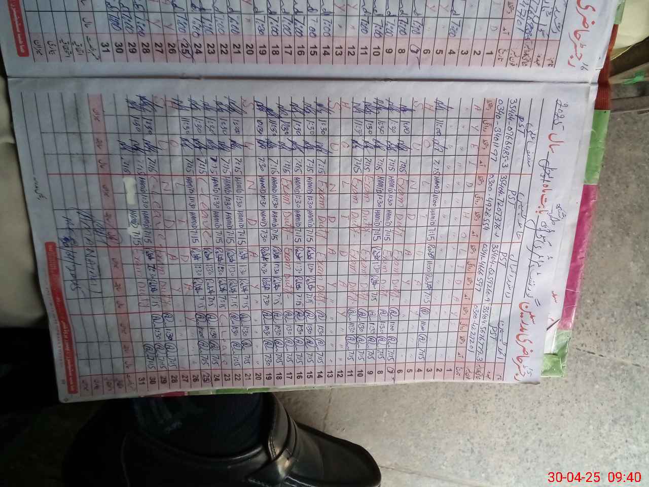 | 35**** | Ra**** Iq**** | 1 | 1 | 0 | 0 | 0 | 0 | 0 | 0 | 0 | 0 | 0 | Exam Duty |