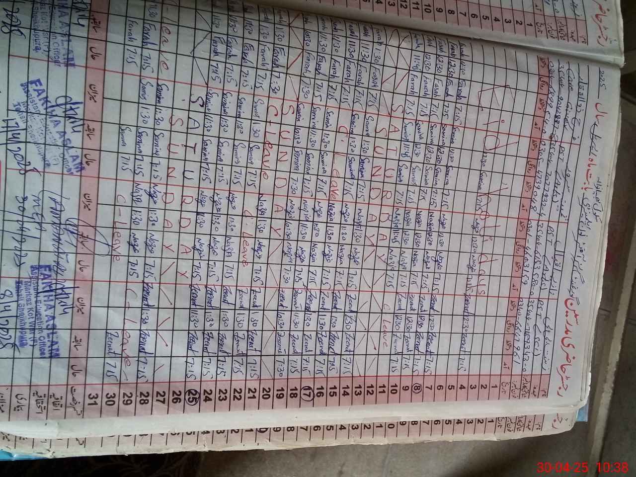 | CNIC | Full Name | Designation | R/C | Absence During Last Calender Month |