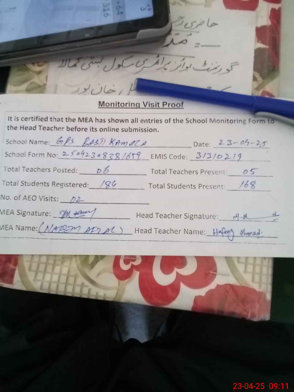 | EMIS Code: 31310219 | Name of School: GPS BASTI KAMALA | |||