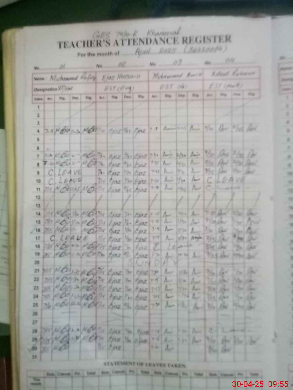 | CNIC | Full Name | Designation | R/C | Absence During Last Calender Month |