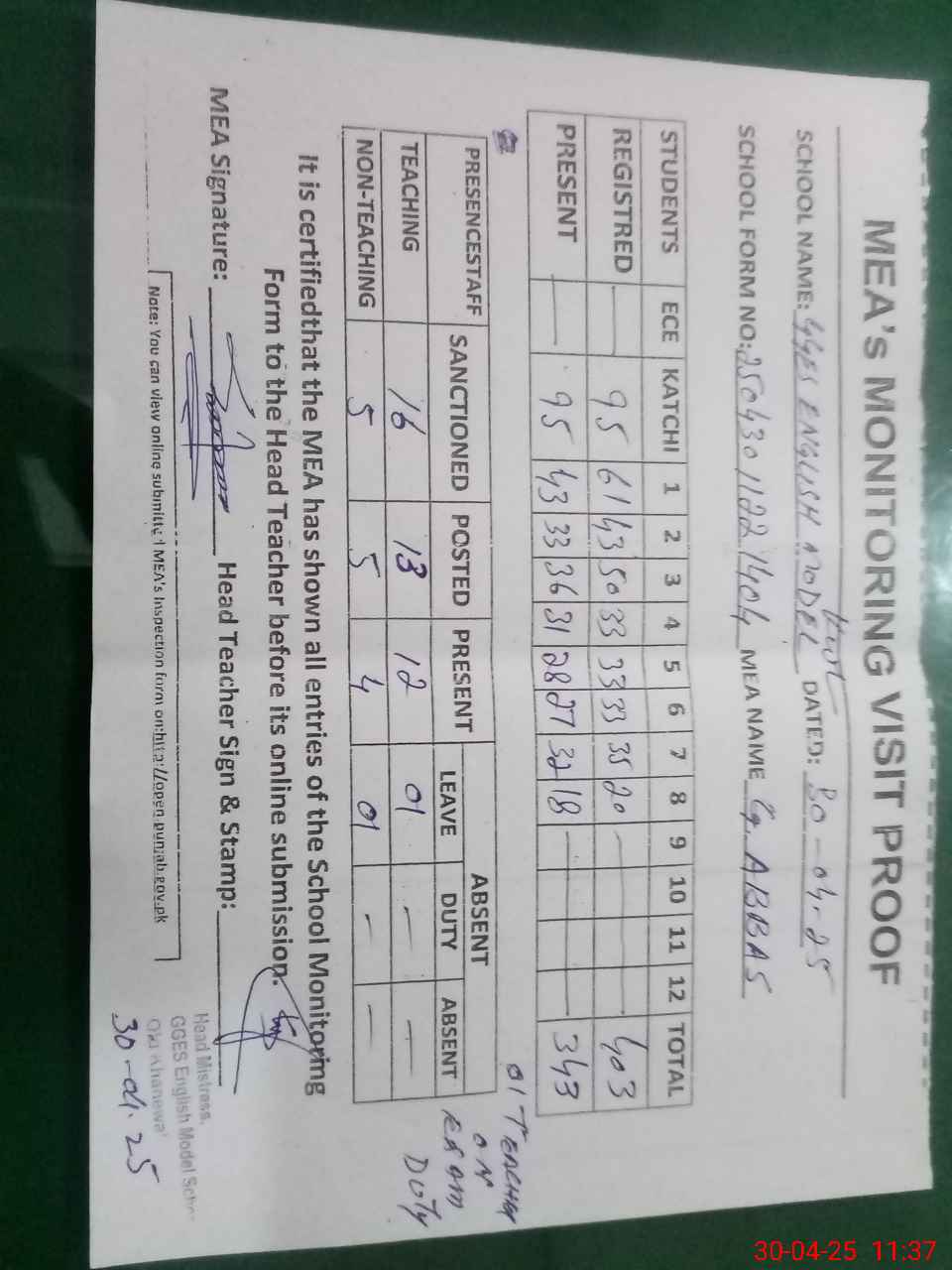 | EMIS Code: 36420093 | Name of School: GGES ENGLISH MODEL KHANEWAL | |||