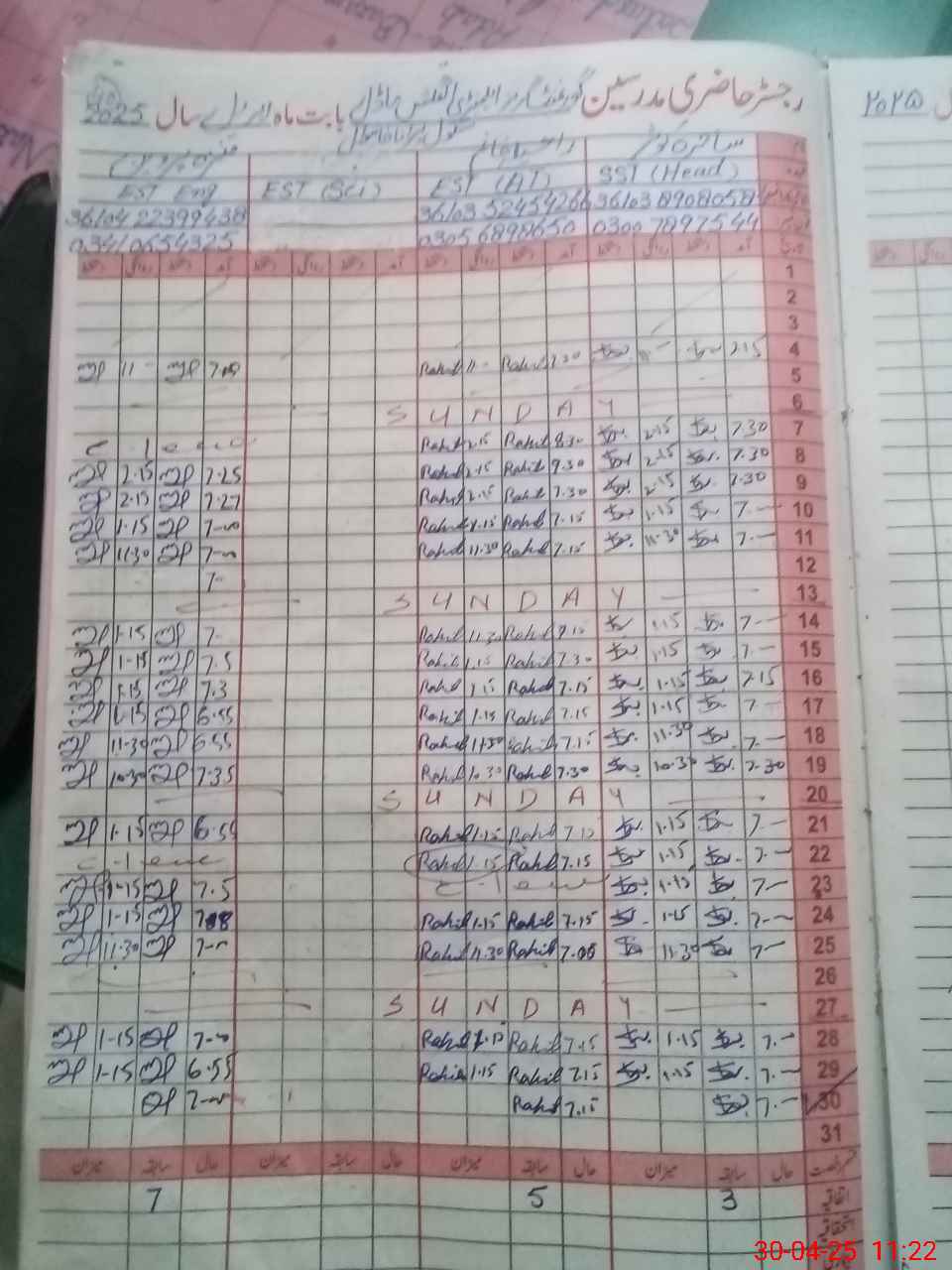 | 36**** | Si**** Na**** | PST | Regular | 0 | 0 | 0 | 0 | 0 | 0 | 0 | 0 | 0 | Exam Duty |