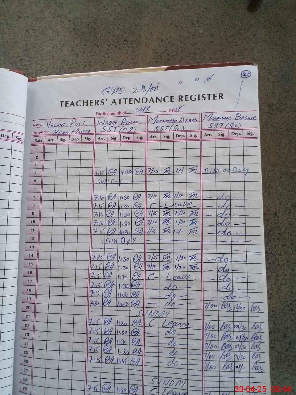 | 36**** | Aa**** Zi**** Sh**** | 1 | 1 | 28 | 0 | 0 | 0 | 0 | 0 | 0 | 1 | Exam Duty | |