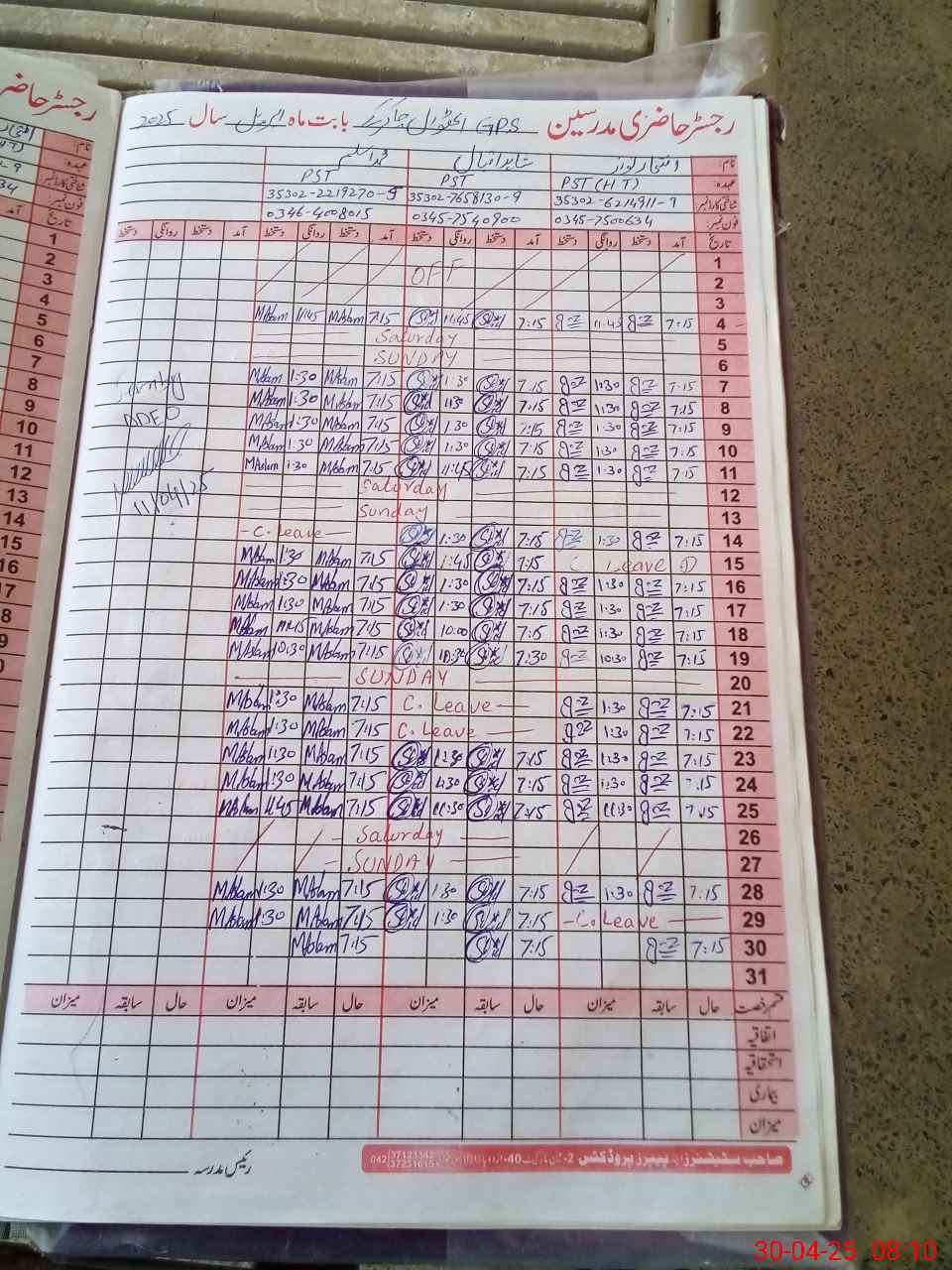| Name: Mu**** Hu**** Designation: (School Headmaster's/Headmistress's) PST Phone/Cell Number: 03**** |