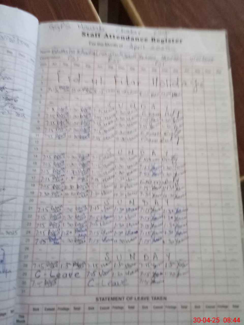 | Leave | Duty | Absent | Maternity | Medical | Ex- Pak |