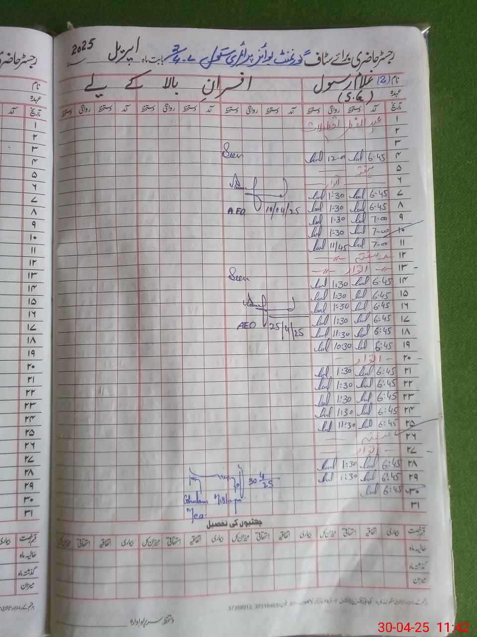 | CNIC | Full Name | Designation | R/C | Absence During Last Calender Month |