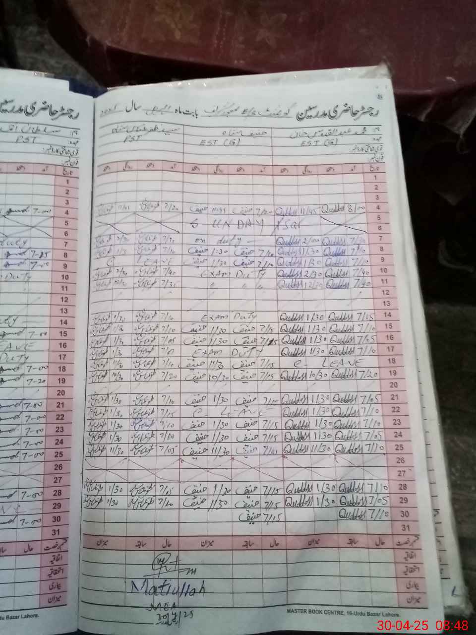 | 38**** | Za**** Ab**** Sh**** | 1 | 0 | 0 | 0 | 0 | 0 | 0 | 0 | 0 | 0 | Absent (Un-Authorized) | |