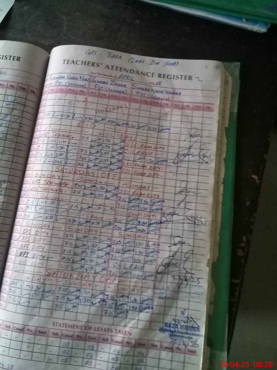 | Leave | Duty | Absent | Maternity | Medical | Ex- Pak |