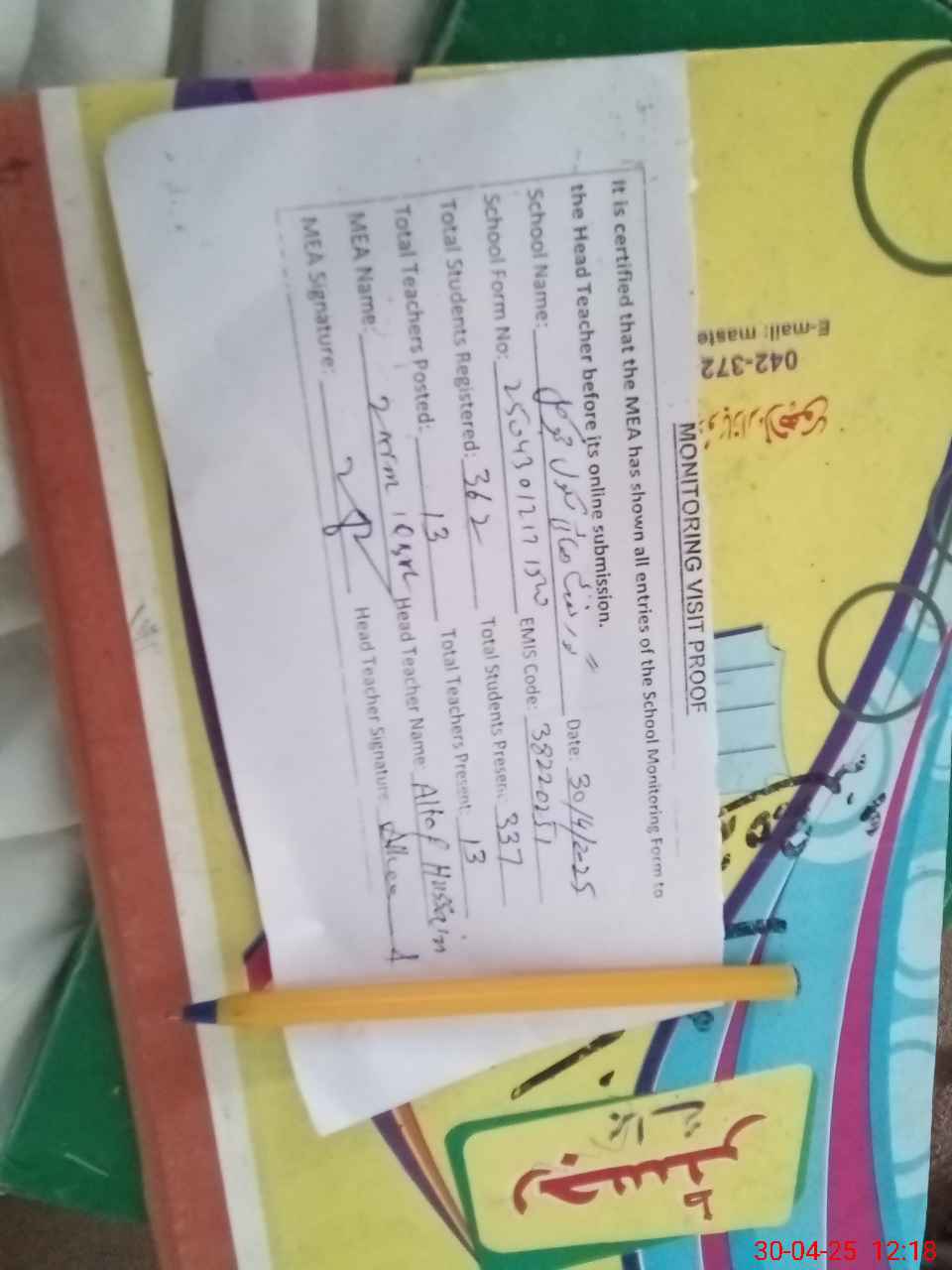 | Certified that this School was Inspected by the Undersigned MEA/DMO Today and the Information Stated Above is as Per Record. | |||||