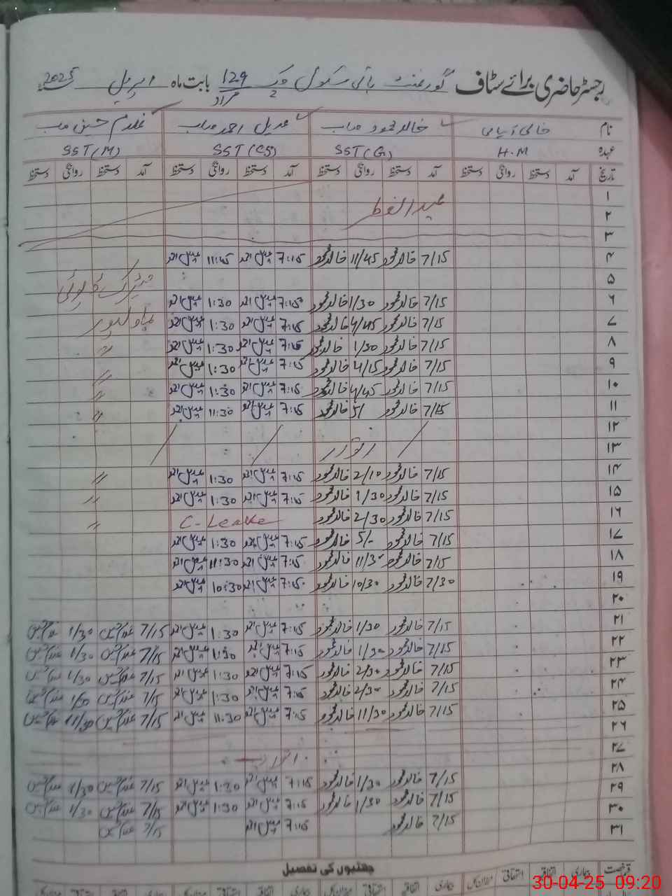 | 31**** | Mu**** Sa**** Gh**** | PST | Regular | 31 | 0 | 0 | 0 | 0 | 31 | 0 | 0 | 0 | Exam Duty |