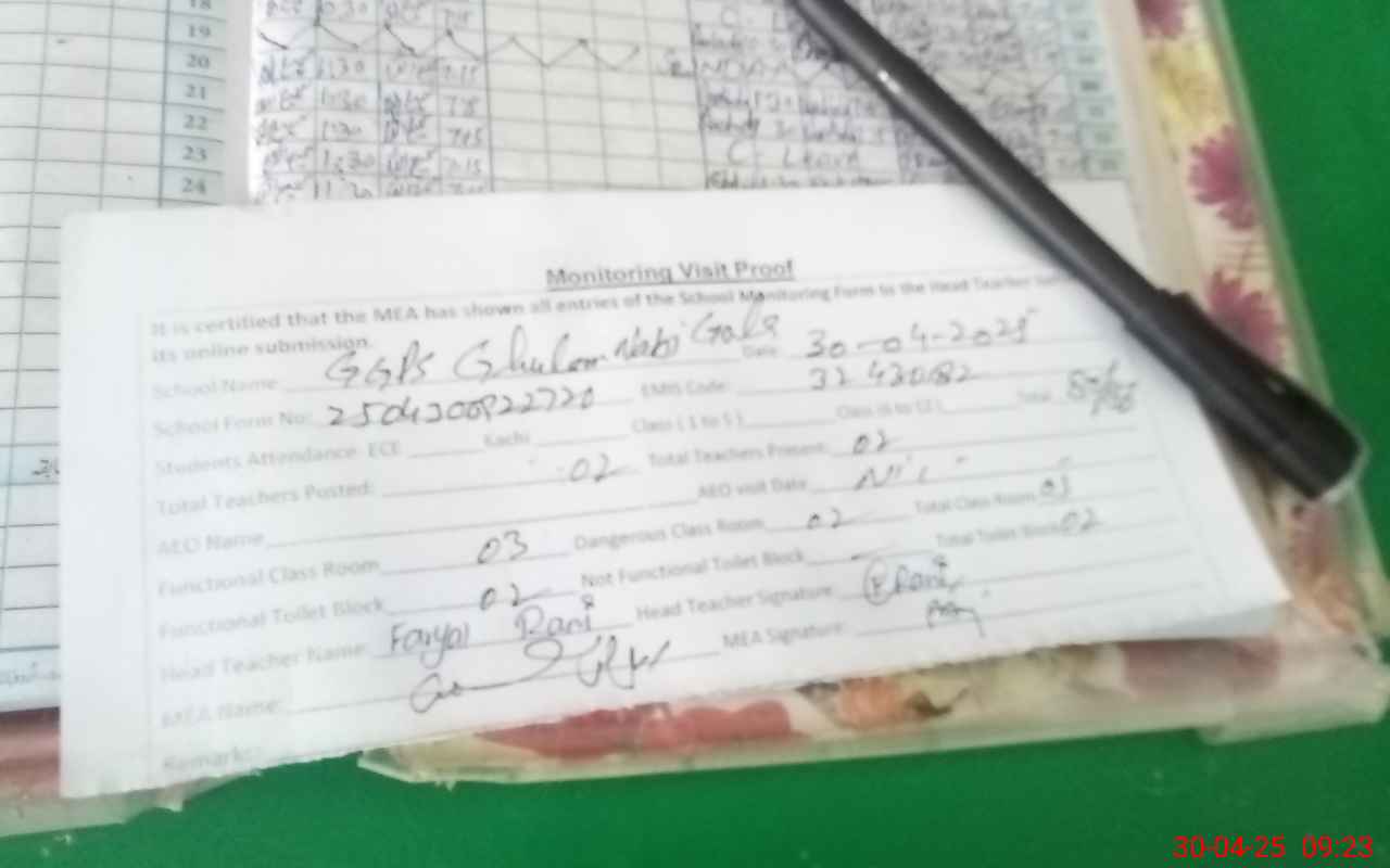 | EMIS Code: 32430182 | Name of School: GGPS GHULAM NABI GOLA | |||