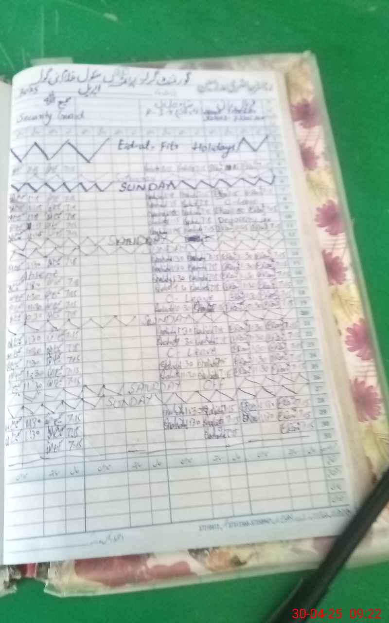 | CNIC | Full Name | Designation | R/C | Absence During Last Calender Month |