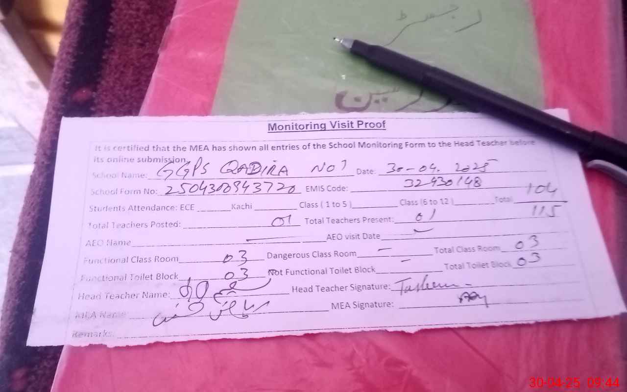 | EMIS Code: 32430148 | Name of School: GGPS QADRA NO. 1 | |||