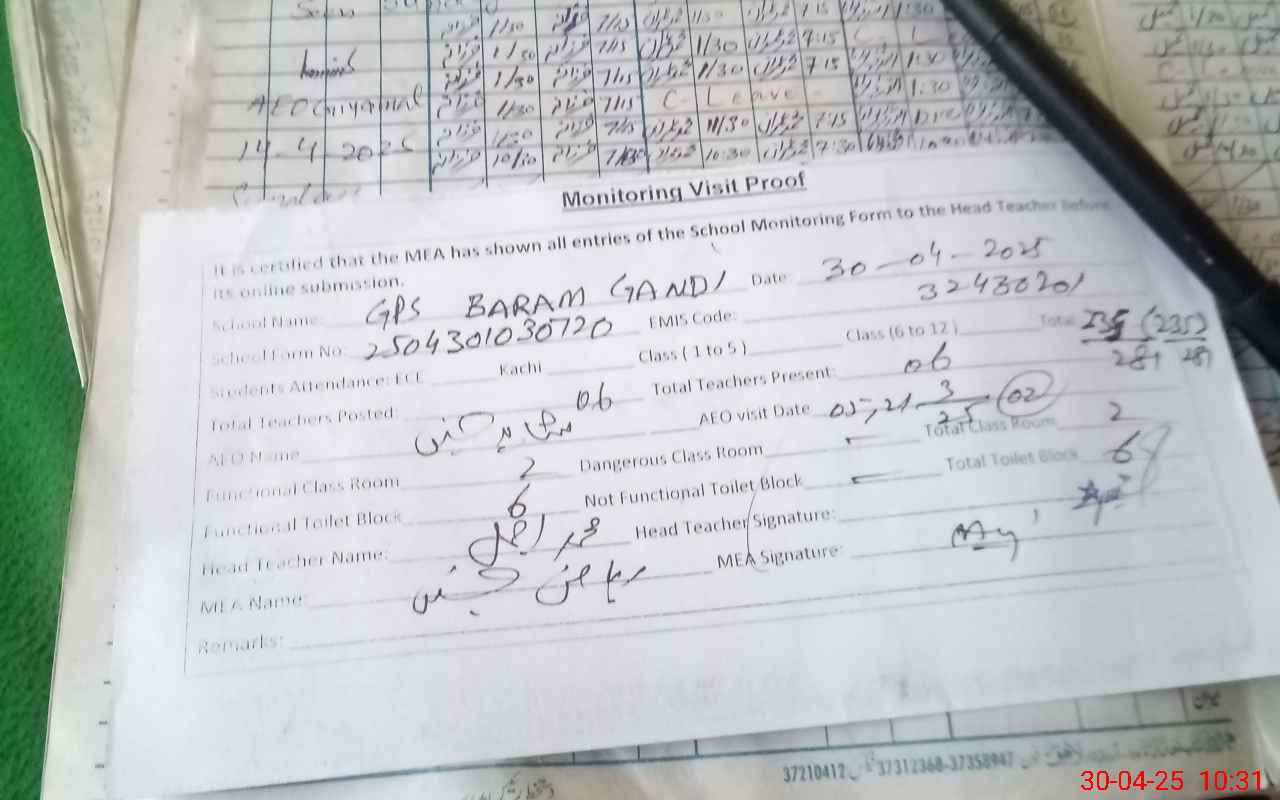 | EMIS Code: 32430201 | Name of School: GPS BARAM GANDI | |||
