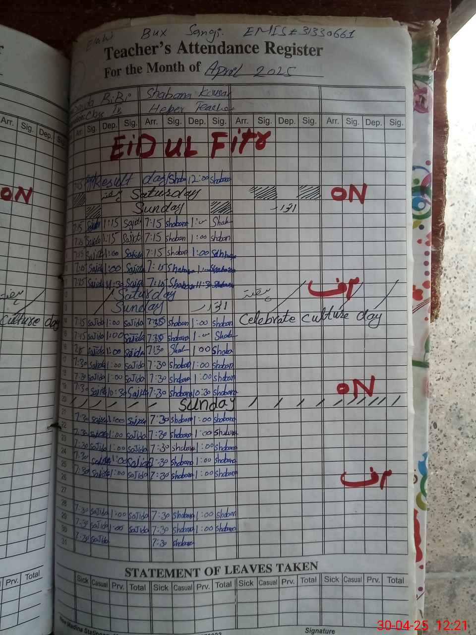 | Leave | Duty | Absent | Maternity | Medical | Ex- Pak |