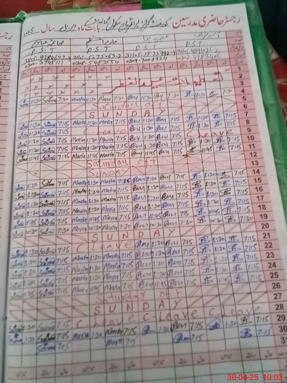 | Name: AS**** SH**** Designation: (School Headmaster's/Headmistress's) PST Phone/Cell Number: 03**** |