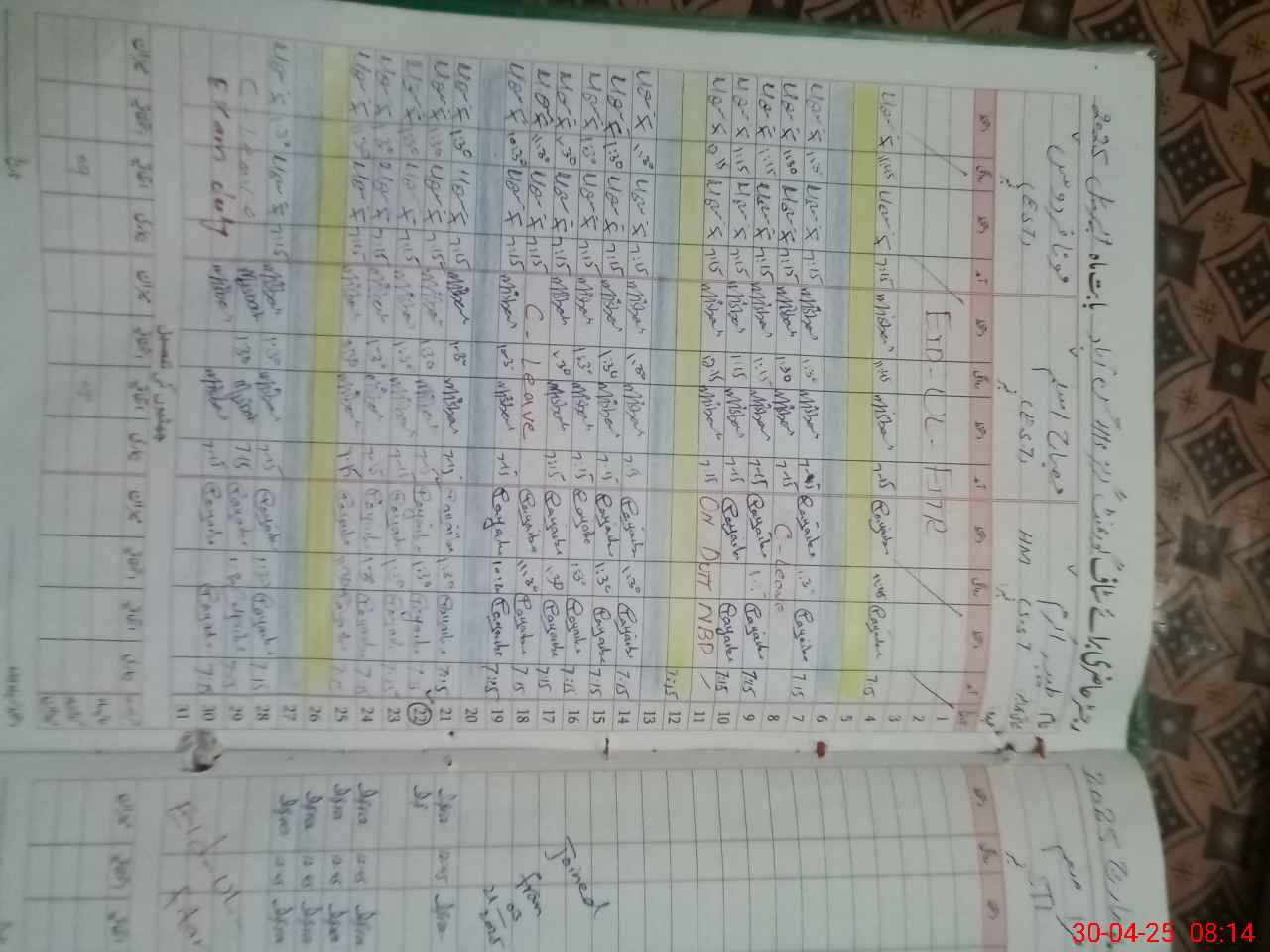 | CNIC | Full Name | Designation | R/C | Absence During Last Calender Month |
