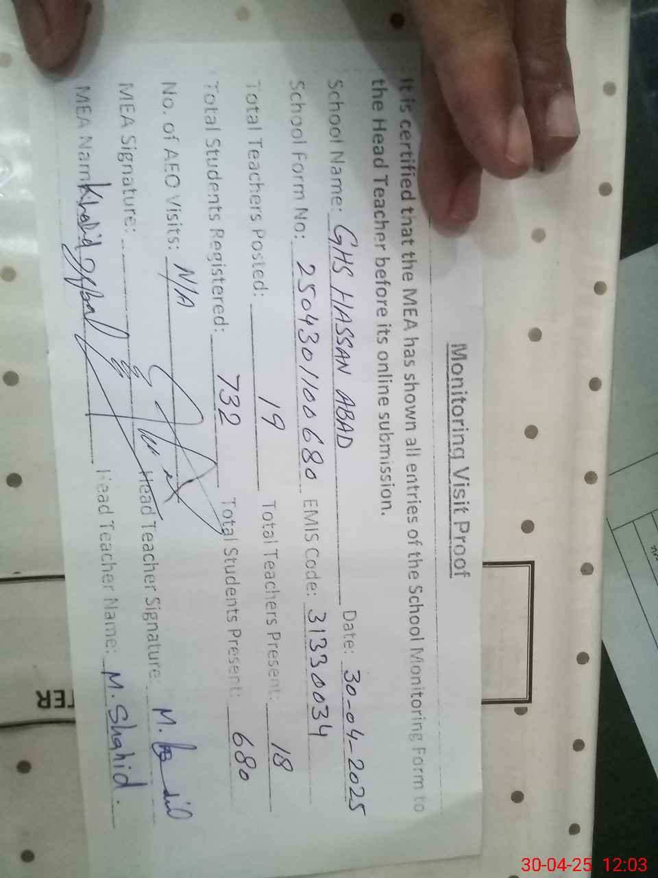 | EMIS Code: 31330034 | Name of School: GHS HASSAN ABAD | |||