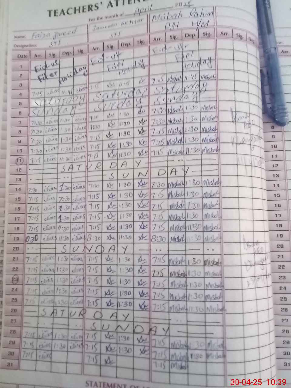 | Name: MI**** RA**** Designation: (School Headmaster's/Headmistress's) PST Phone/Cell Number: 03**** |