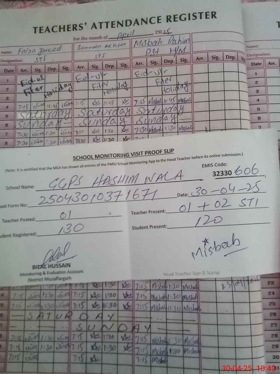 | EMIS Code: 32330606 | Name of School: GGPS HASHIM WALA | |||
