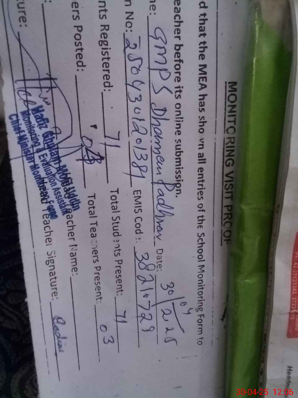 | EMIS Code: 38210729 | Name of School: GMPS DHAMAN PADHRAR | |||