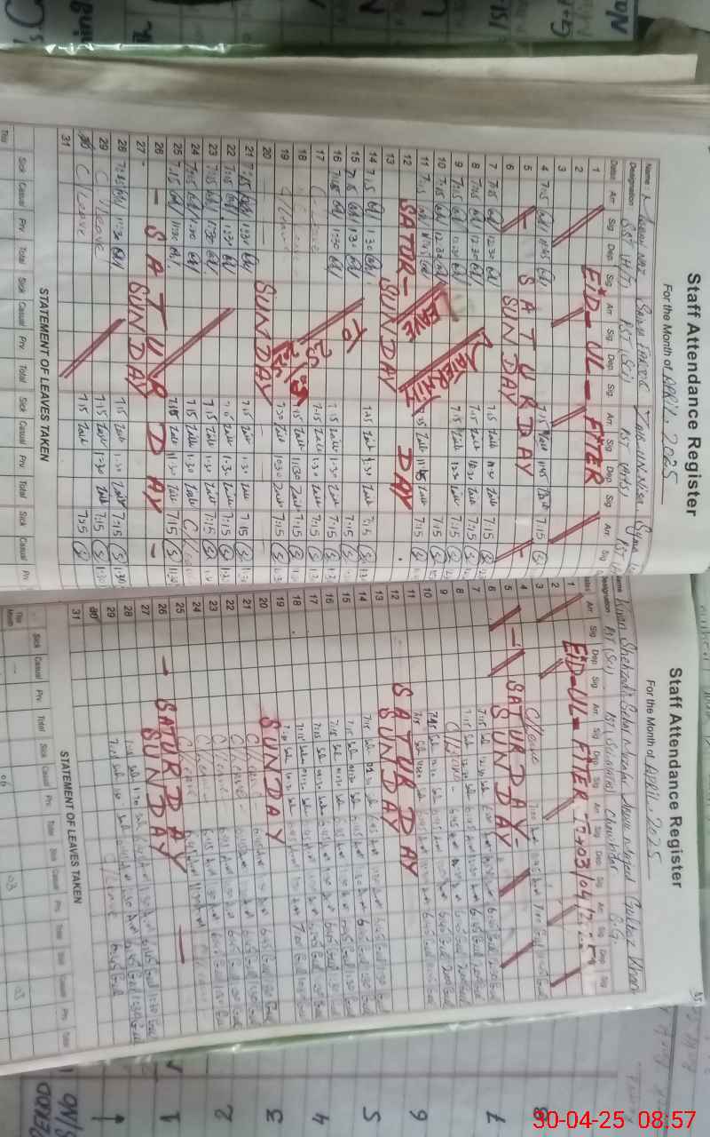 | 35**** | Ab**** Ma**** | CHOKIDAR | Regular | 0 | 0 | 0 | 0 | 0 | 0 | 0 | 0 | 0 | Casual |