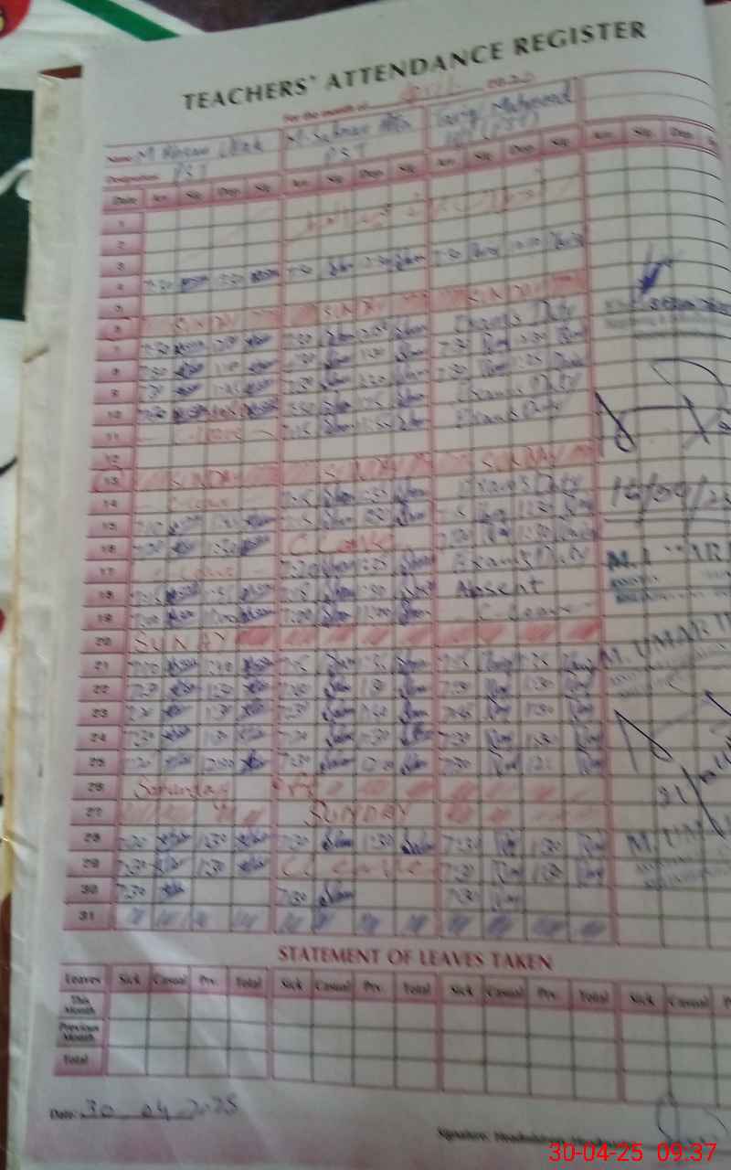 | Attendance Register | Head Teacher | MEA with School | Visit Proof |