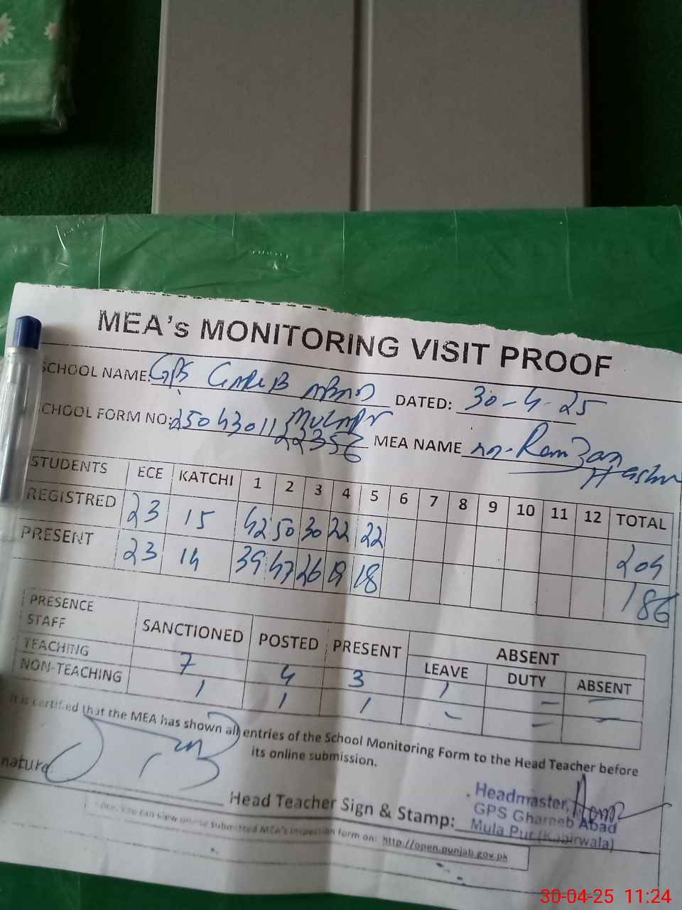 | EMIS Code: 36410524 | Name of School: GPS GHARIB ABAD MULA PUR KABIRWALA | |||