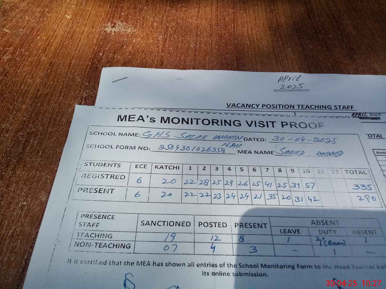 | EMIS Code: 36410028 | Name of School: GHS SALAR WAHIN NAU, NAWAN SHEHR | |||