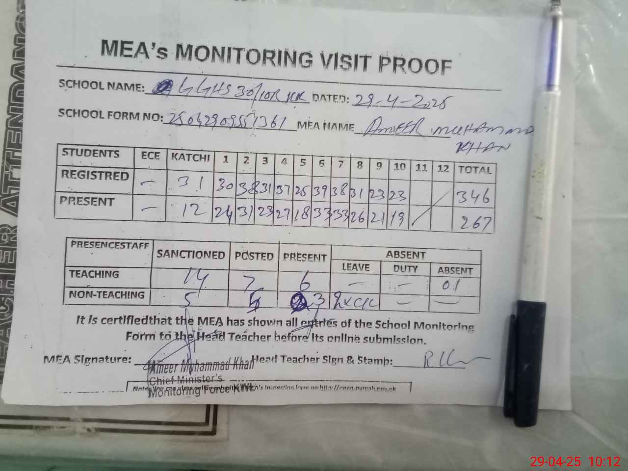 | EMIS Code: 36420114 | Name of School: GGHS 30/10-R, KACHA KHUH | |||