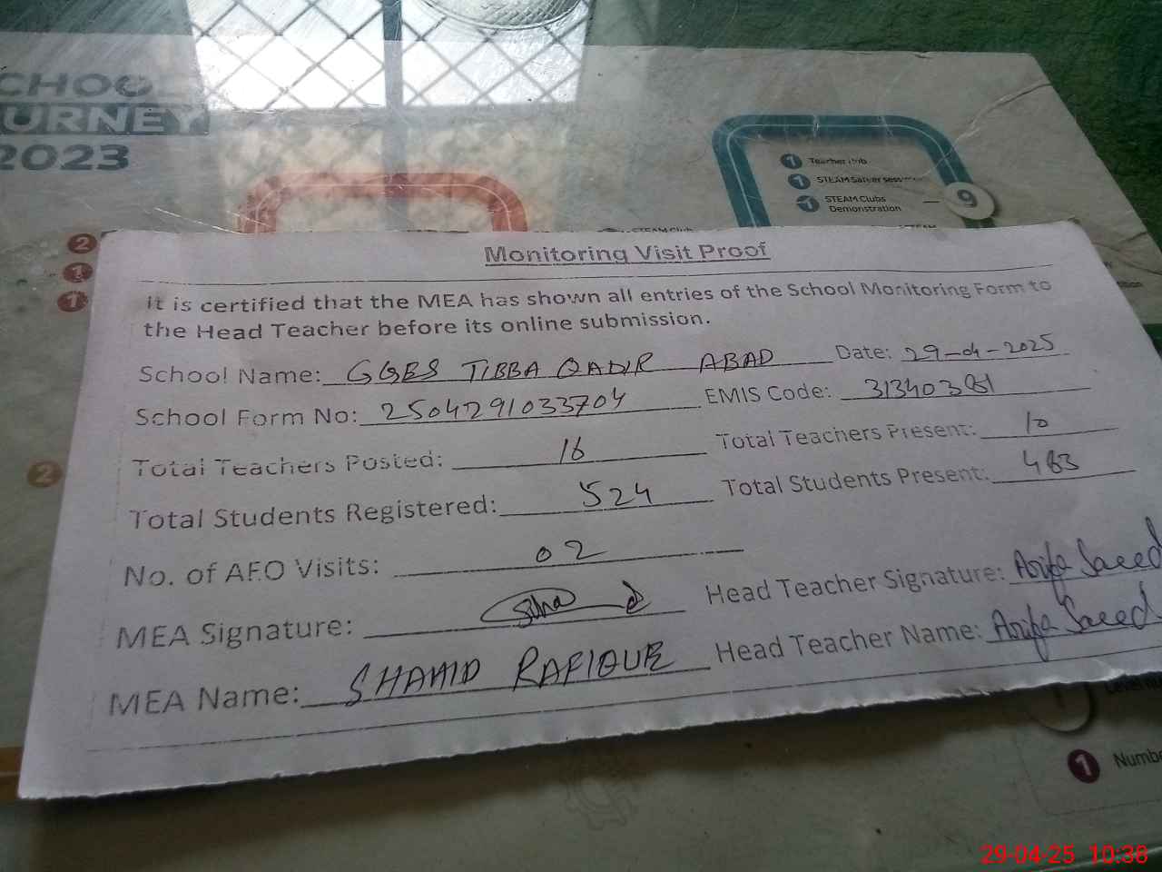 | EMIS Code: 31340381 | Name of School: GGES TIBBA QADIR ABAD | |||