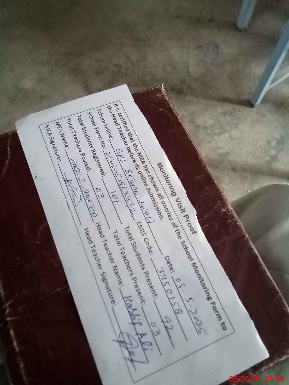 | EMIS Code: 31150158 | Name of School: GPS SETHANA WALI | |||