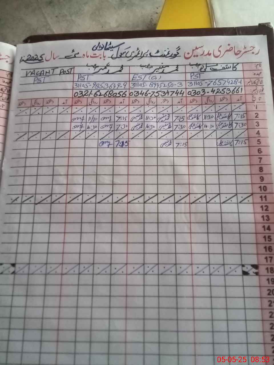 | Name: Ka**** Al**** Designation: (School Headmaster's/Headmistress's) PST Phone/Cell Number: 03**** |