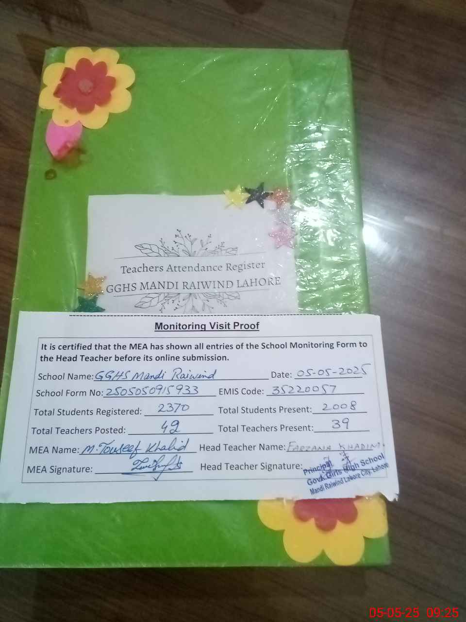 | EMIS Code: 35220057 | Name of School: GGHS MANDI RAIWIND | |||