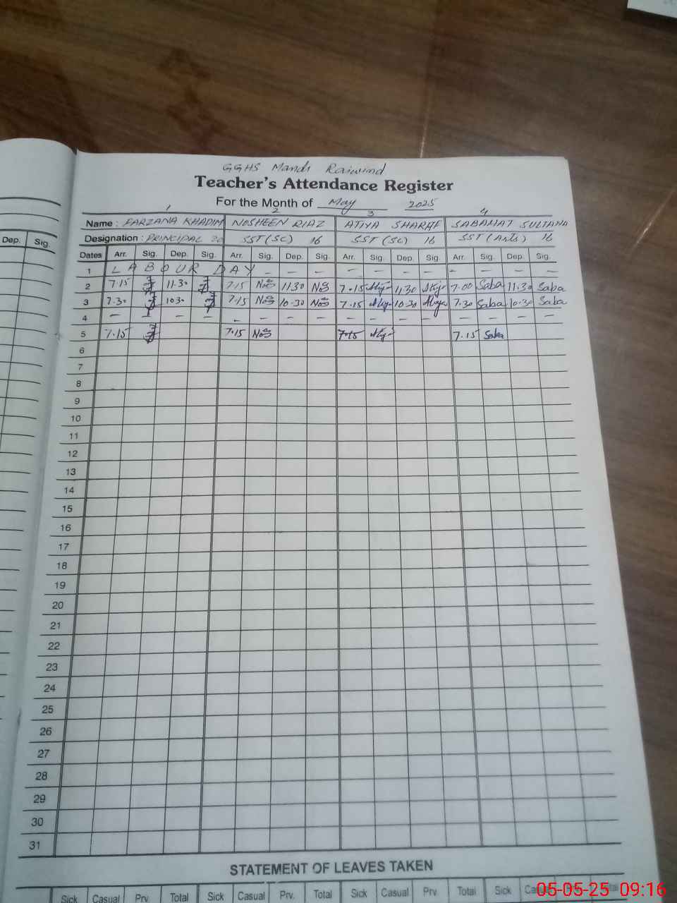 | 35**** | Ay**** Ra**** | Contract | 0 | 0 | 30 | 0 | 0 | 0 | 0 | 0 | 0 | Absent (Un-Authorized) | |