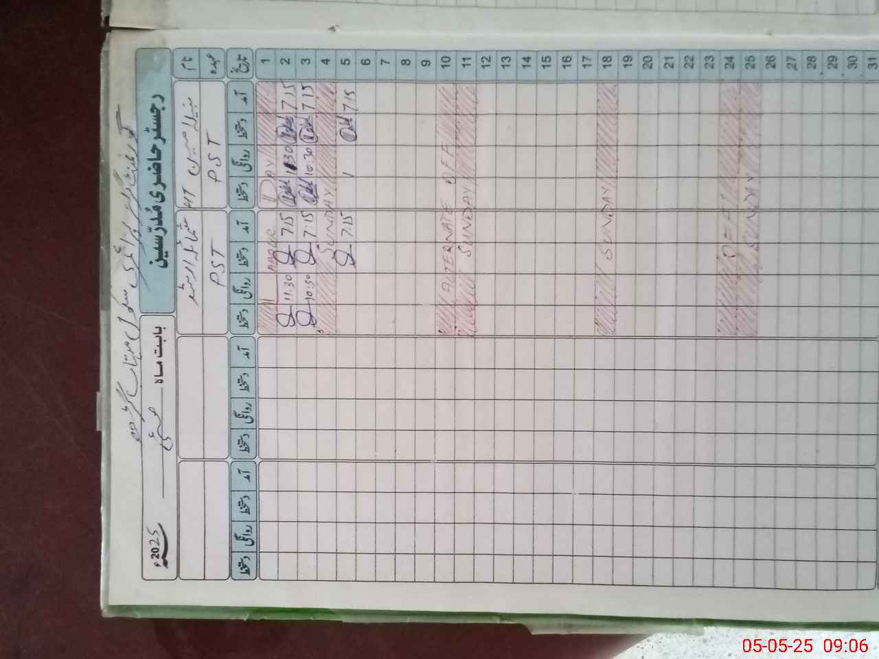| CNIC | Full Name | Designation | R/C | Absence During Last Calender Month |
