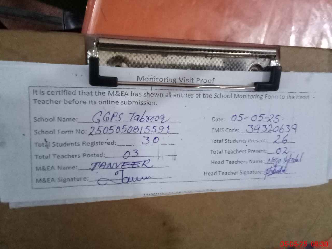 | EMIS Code: 39320639 | Name of School: GGPS TABROOQ | |||