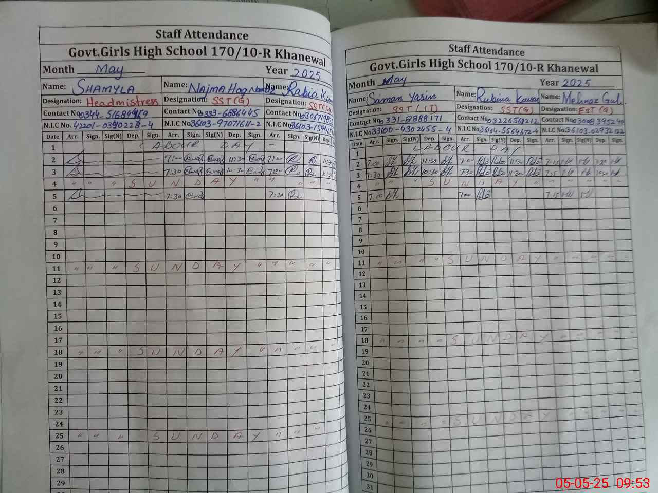 | CNIC | Full Name | Designation | R/C | Absence During Last Calender Month |