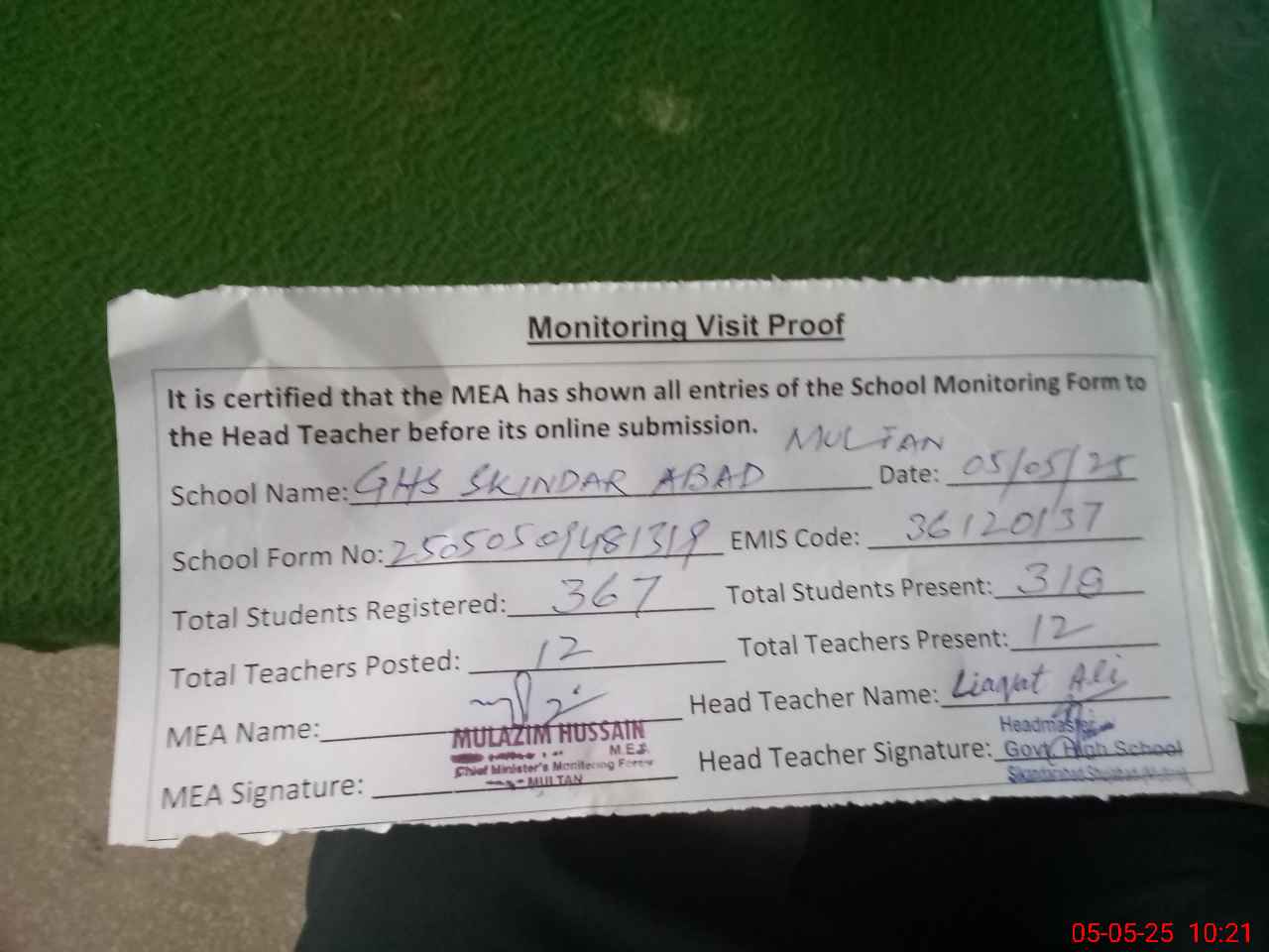 | EMIS Code: 36120137 | Name of School: GHS SIKANDER ABAD SHUJABAD | |||