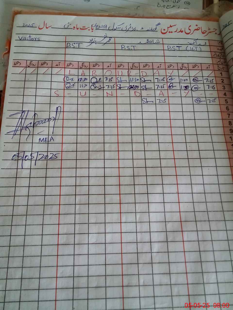 | Monitoring Date: 05-05-2025 | Start Time: 05-05-2025 07:55 AM | End Time: 05-05-2025 08:23 AM | Name of MEA: MU**** AS**** | |