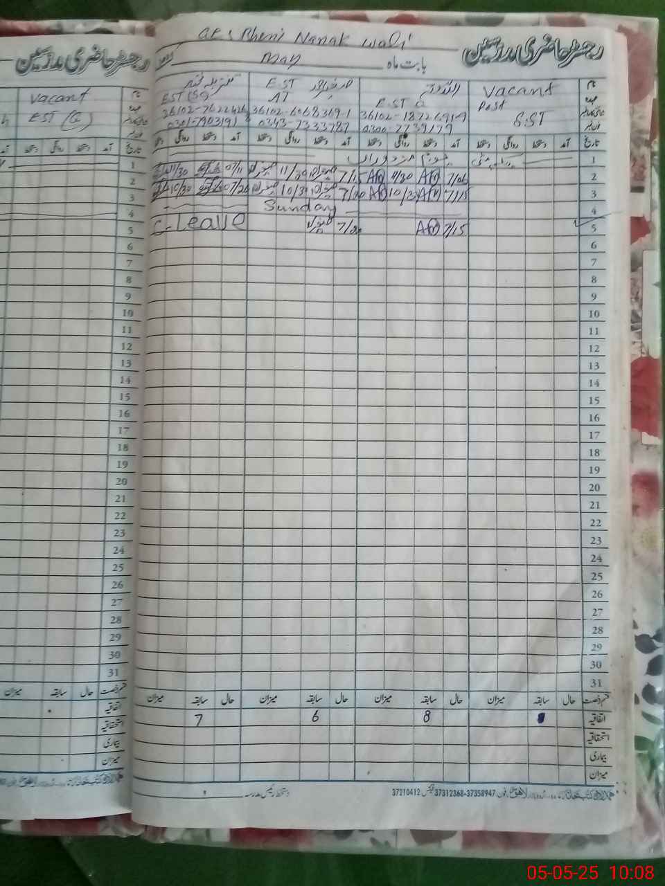 | 36**** | Ta**** Mu**** | SESE | Contract | 0 | 0 | 0 | 0 | 0 | 0 | 0 | 0 | 0 | Casual |