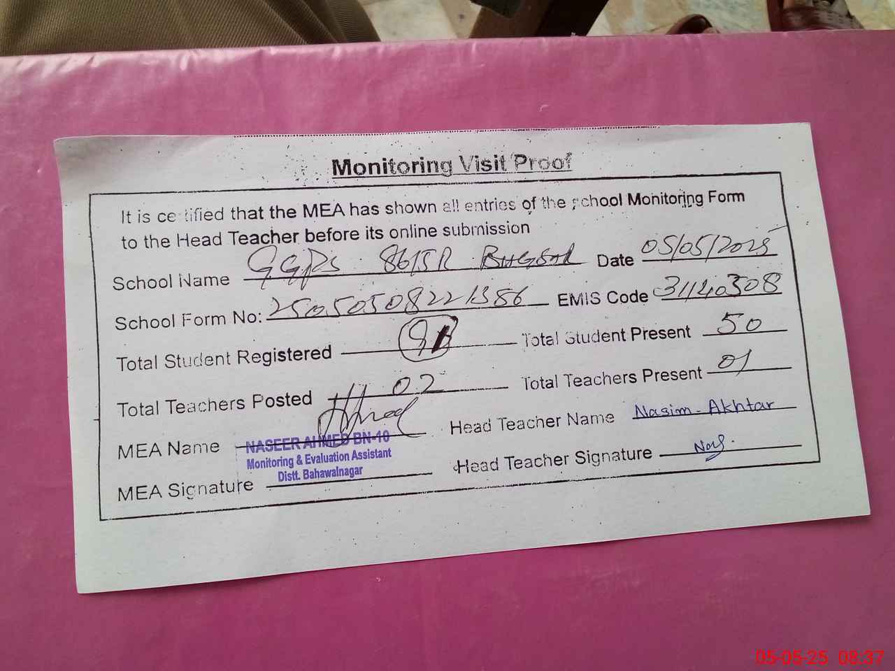 | EMIS Code: 31140308 | Name of School: GGPS CHAK NO 86/5-R BHAGSAR | |||