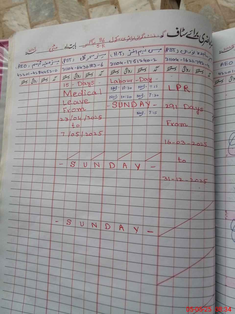 | Leave | Duty | Absent | Maternity | Medical | Ex- Pak |