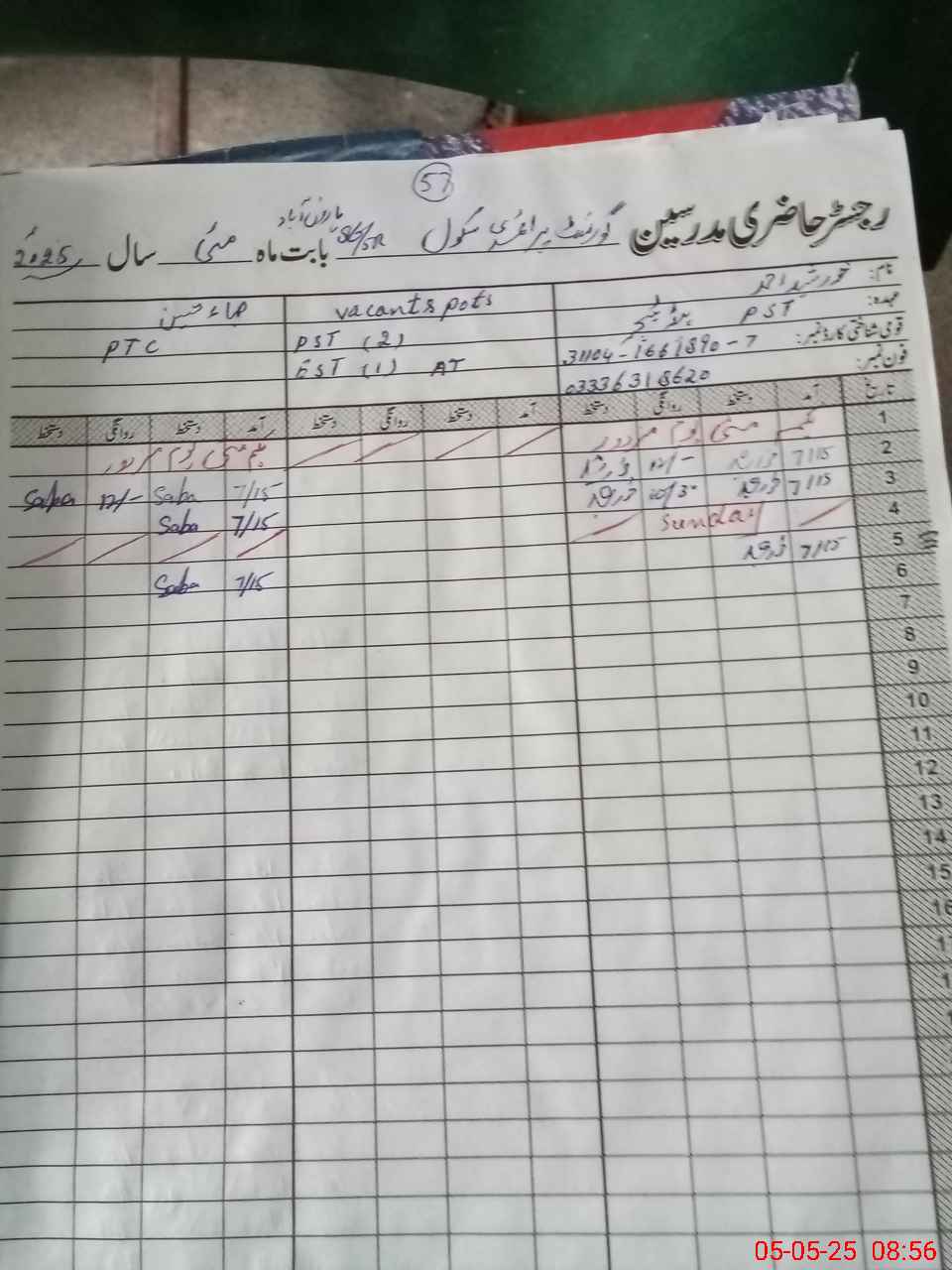 | Name: Kh**** Ah**** Designation: (School Headmaster's/Headmistress's) PST Phone/Cell Number: 03**** |