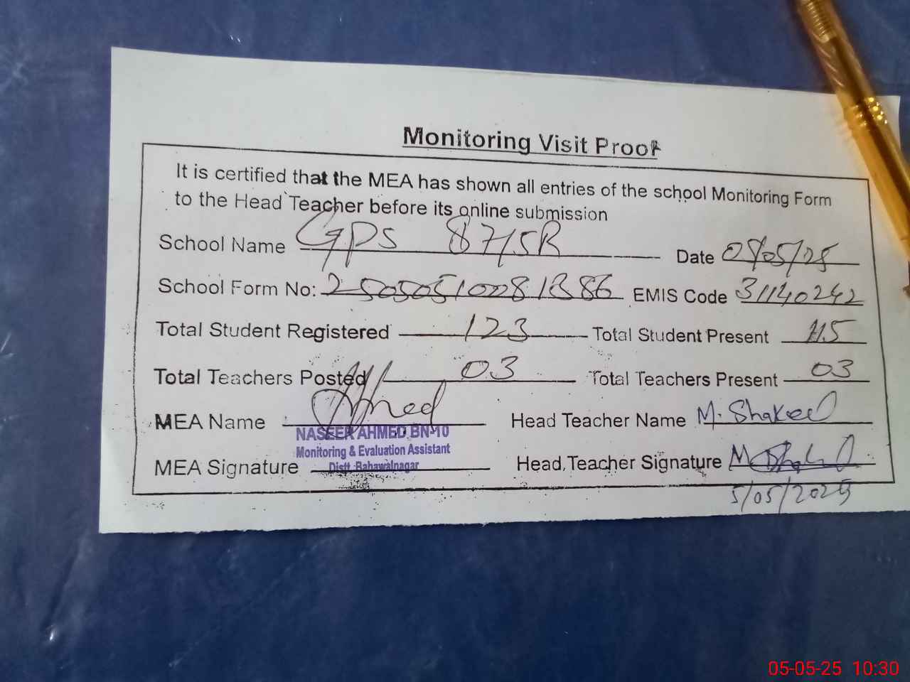 | Name: Mu**** Sh**** Designation: (School Headmaster's/Headmistress's) PST Phone/Cell Number: 03**** |