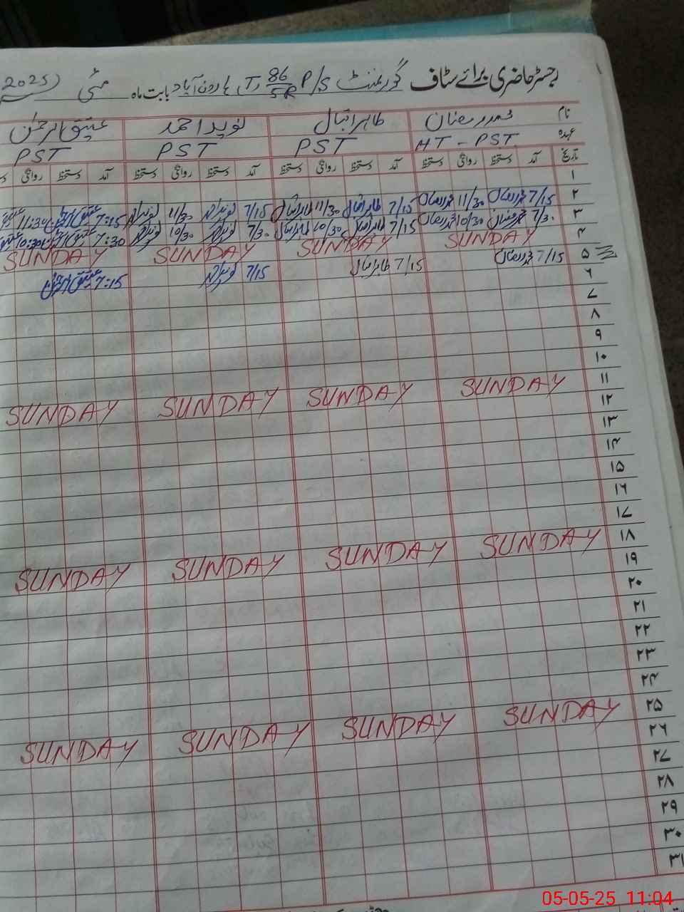 | CNIC | Full Name | Designation | R/C | Absence During Last Calender Month |